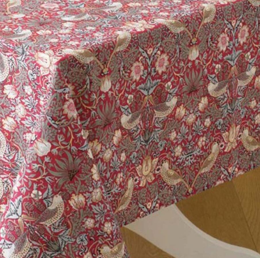 商品名:ウィリアムモリス コットン テーブルクロス 長方形 Strawberry Thief Red